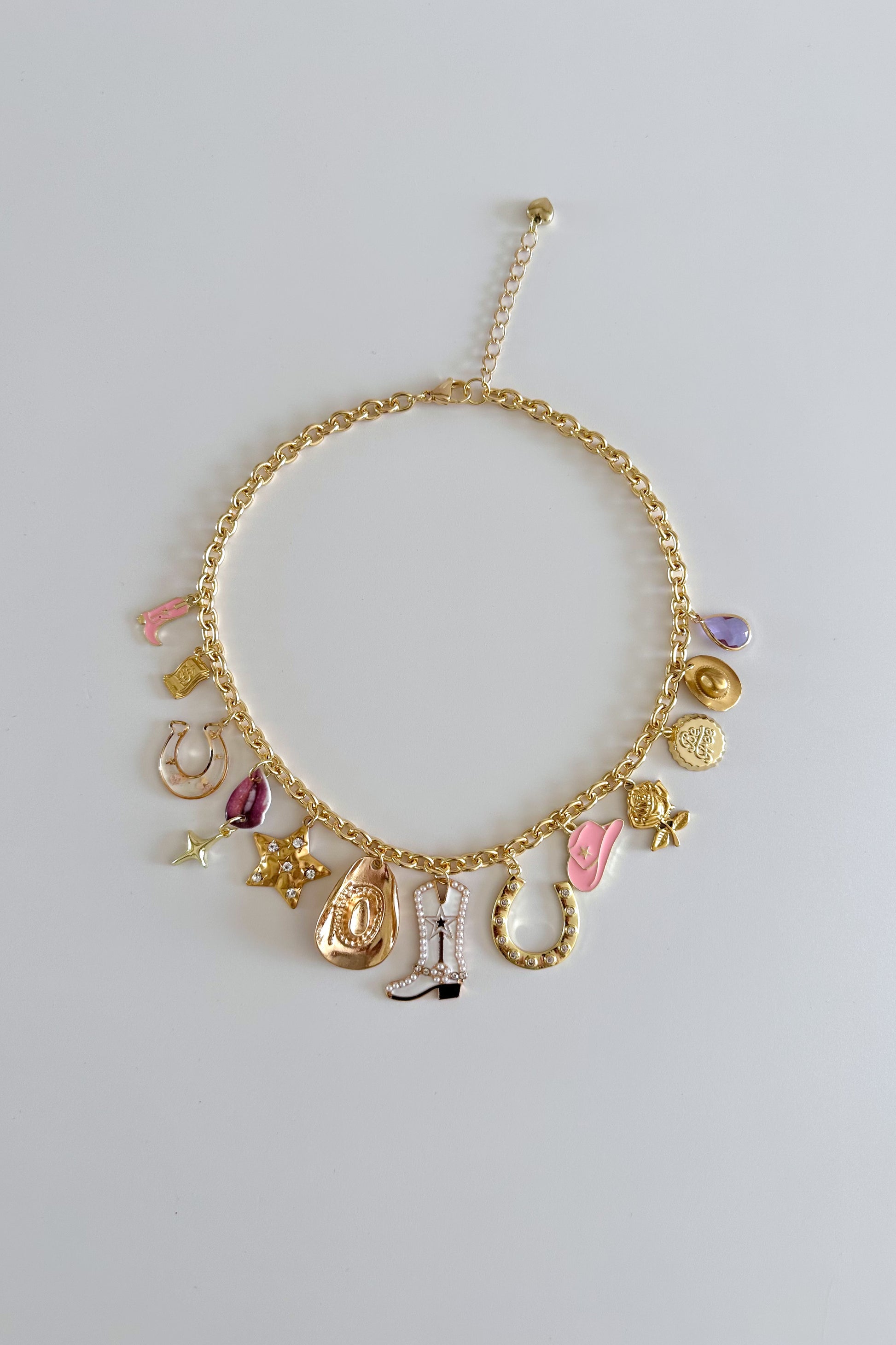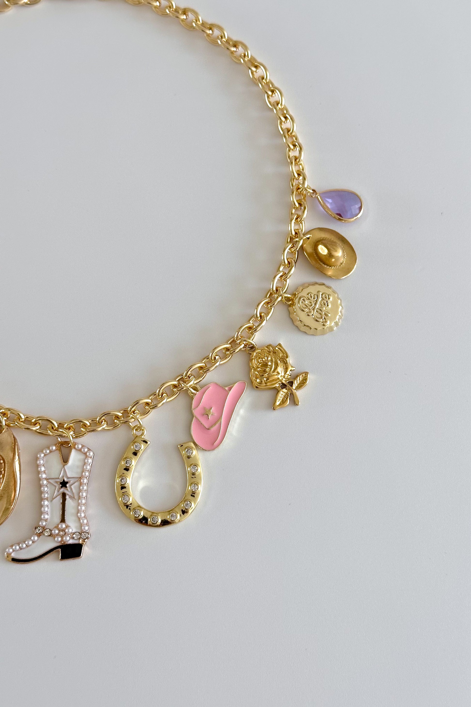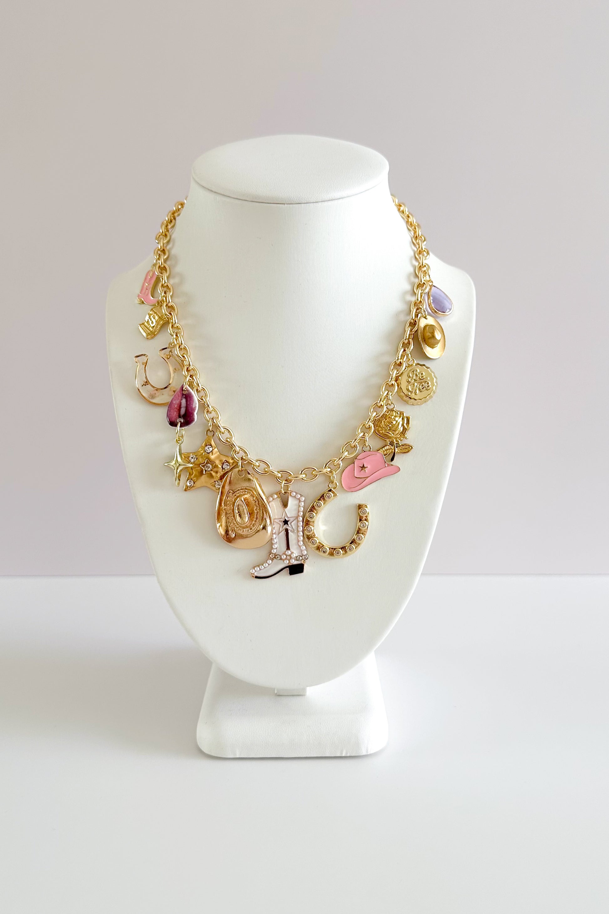 Pink Pony Gold Plated Statement Vintage Charm Necklace
