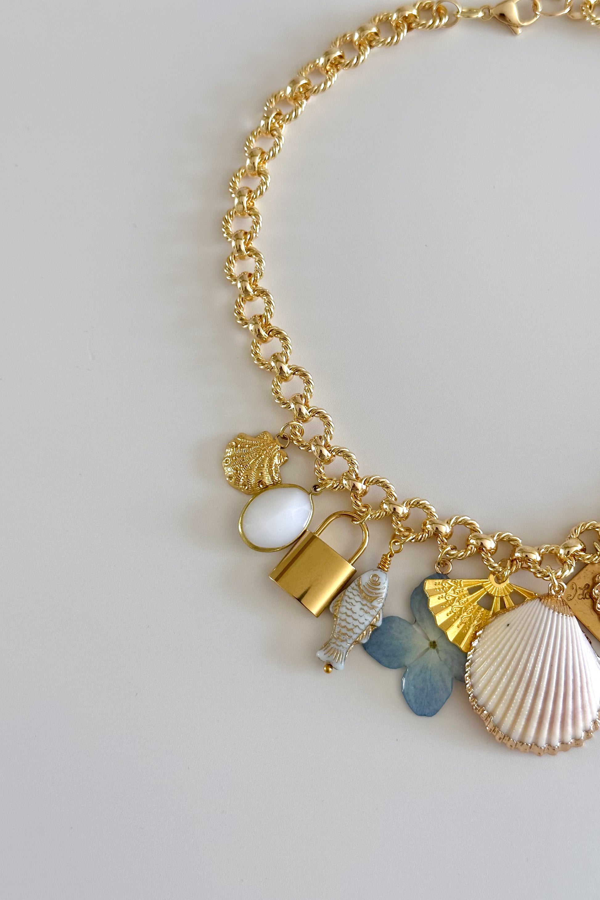 Seafoam Gold Plated Statement Vintage Charm Necklace